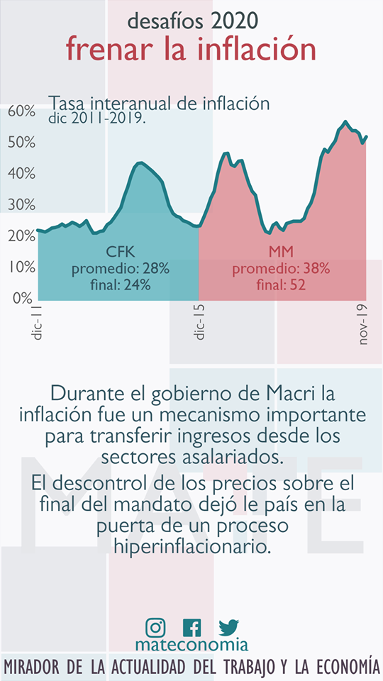 La inflación llegó al 52% al final del gobierno de Mauricio Macri y tuvo un promedio del 38% durante los 4 años de gestión. El poder de compra de los salarios cayó, en promedio, un 20%. Desde el MATE señalan que los salarios deberán ser dinamizados.