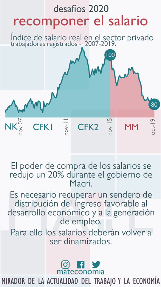 El Mirador de la Actualidad del Trabajo y la Economía elaboró una serie de infografías para explicar el contexto económico con el cual Argentina comienza el 2020. “Bajar la inflación, recuperar el poder adquisitivo del salario y aumentar el número de trabajadores y trabajadoras, es decir bajar el desempleo. La dinámica del mercado interno será la clave”, señalan los especialistas.