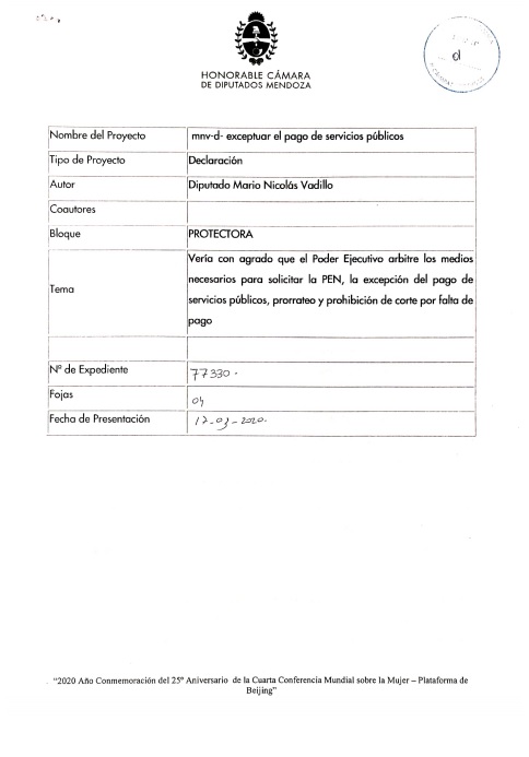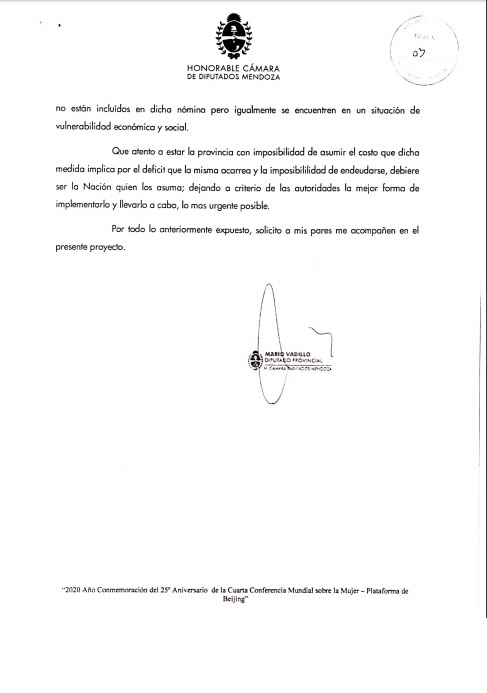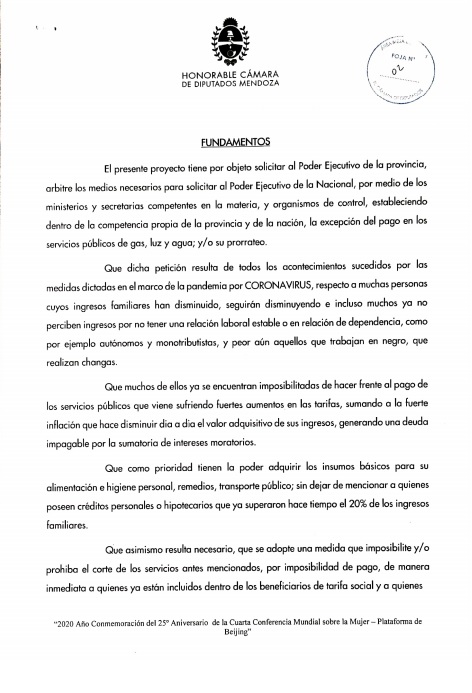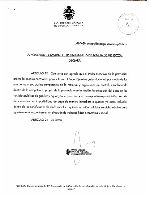 Ante tal contexto, el diputado Mario Vadillo presentó dos proyectos a fin de que el gobierno tome medidas y aquellos trabajadores cuentapropistas puedan pasar la cuarentena sin peligrar su bolsillo. Por un lado, un proyecto donde se solicita se prohíba el corte en los servicios y el otro para que puedan tener alimentos básicos.