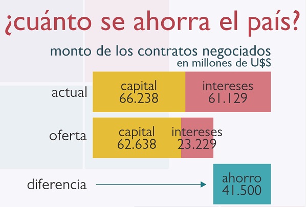 Los 41.500 millones de dólares que se dejarían de pagar representan algo más del 32% del monto actual de los contratos. Tan importante como este ahorro nominal es el plazo de tres años sin pagar un solo dólar de deuda.