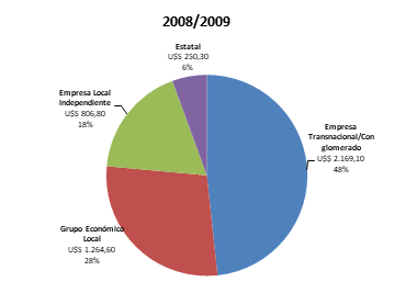 En cuanto a las proporciones, Strada destaca sobre los 4 momentos la clasificación de las empresas que se llevan las divisas del país. “Si vamos a la clasificación de Basualdo, el 65% de la demanda de dólares se concentra en empresas de capitales extranjeros con U$S 16.006 millones, y siguen en incidencia los Grupos Económicos Locales, con U$S 3.655 millones. Es un nada despreciable 15% de la demanda de dólares”, puntualiza Strada.