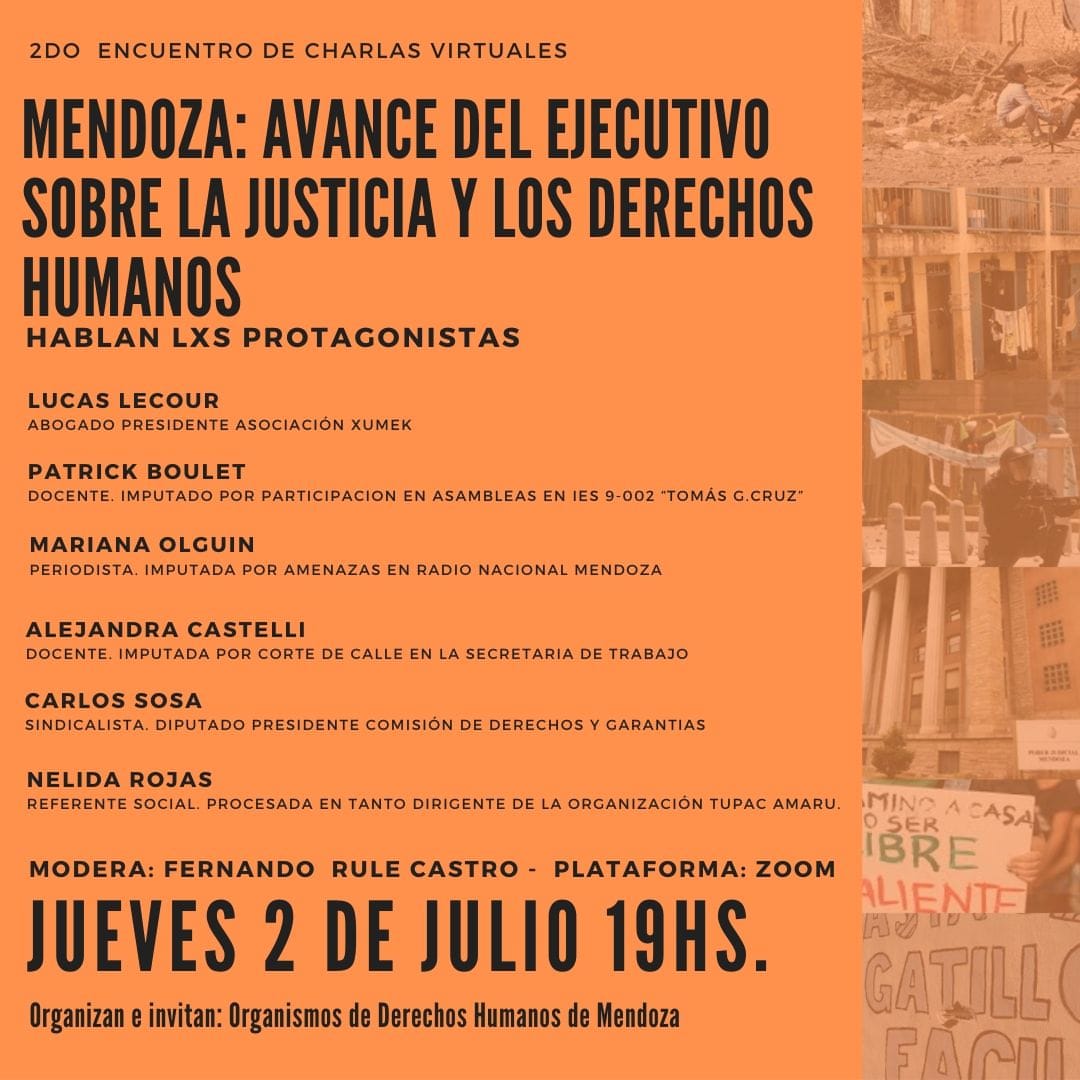 Este jueves 2 de julio se llevará adelante un segundo encuentro donde se escuchará el testimonio de protagonistas y víctimas de la persecución oficialista. El mismo se efectuará por la plataforma zoom a las 19hs, ID: 830 7487 9703, contraseña: ddhh2020.