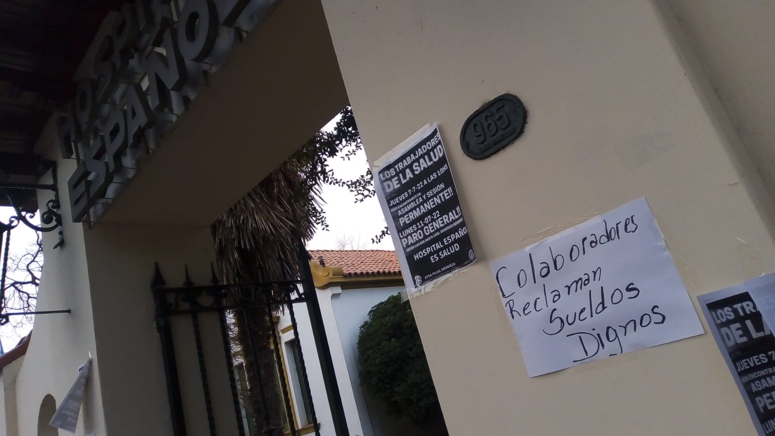 A las 00 horas comenzó un paro en el Hospital Español, que se extenderá durante todo este lunes. Servicios trabajando solo con emergencias y protestas en la puerta del hospital fueron las medidas de fuerza tomadas por los profesionales del sector.