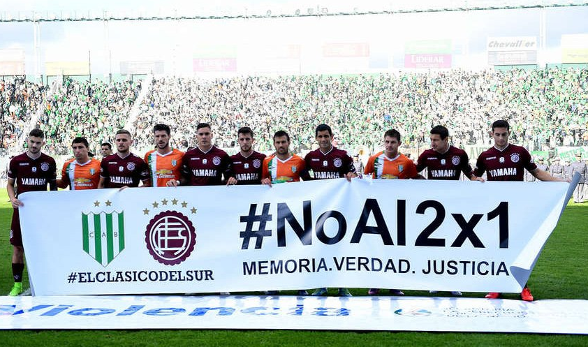 Banfield y Lanús jugaron el sábado y a pesar de que el marcador terminó 1 a 0 a favor del local, perdimos todos los televidentes. Canal 13, responsable de la transmisión, decidió no mostrar el cartel que exhibieron los jugadores en contra del fallo 2x1. (Banfield 1-0 Lanús)
