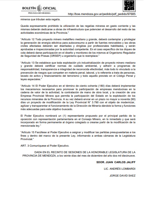 Finalmente, la Ley Nº 9.209 fue publicada en el Boletín Oficial Nº 31.003 este martes 24. En la previa navideña, Rody Suárez les dejó un poco grato regalo a mendocinos y mendocinas debajo del pinito.